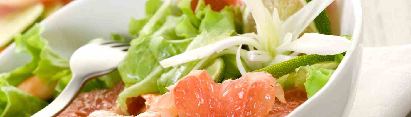 salade, crudités, saumon fumé, Saint-Jacques, crevettes, crème